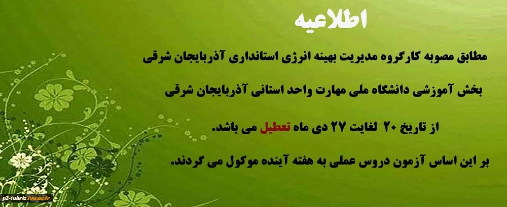 اطلاعیه تعطیلی دانشگاه ملی مهارت - آموزشکده شماره دو تبریز